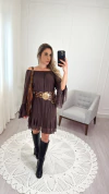 Confeccionado no tecido crepe de seda, um tecido nobre , delicado, fluido e muito elegante que proporciona um ótimo caimento e leveza para a peça! Possui mangas amplas e fluidas com acabamento em elástico, proporcionado elegância e delicadeza ao vestido.